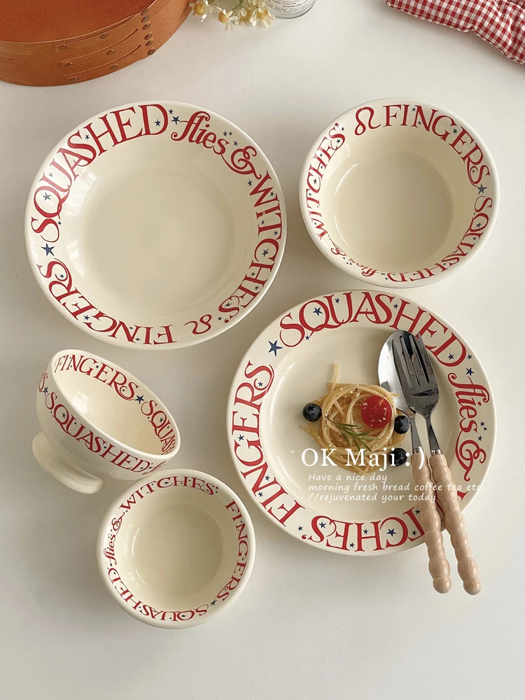 Party Red Design Dinner Set Plates European Style Elegant Round Plates Dinner Sets Ceramic Luxury Vaisselle Kitchen Dishes