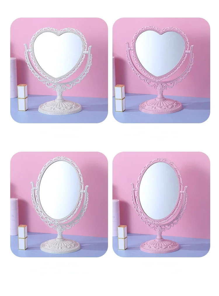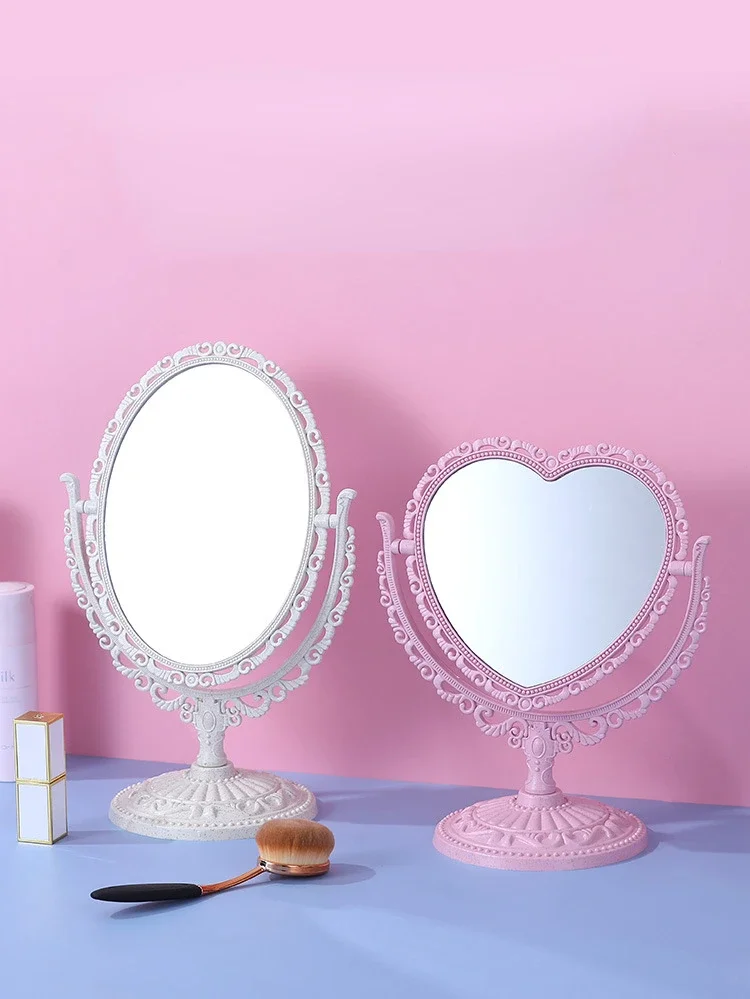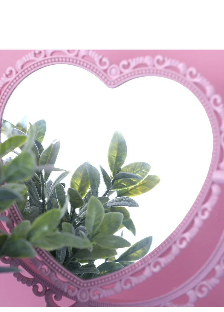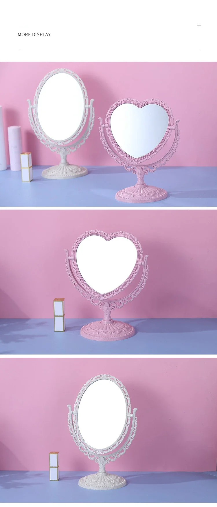 Pink Heart Shape European-Style Retro Make Up Mirror Lovely Girl Oval Princess Cosmetic Creative retro Girls Student Dormitory