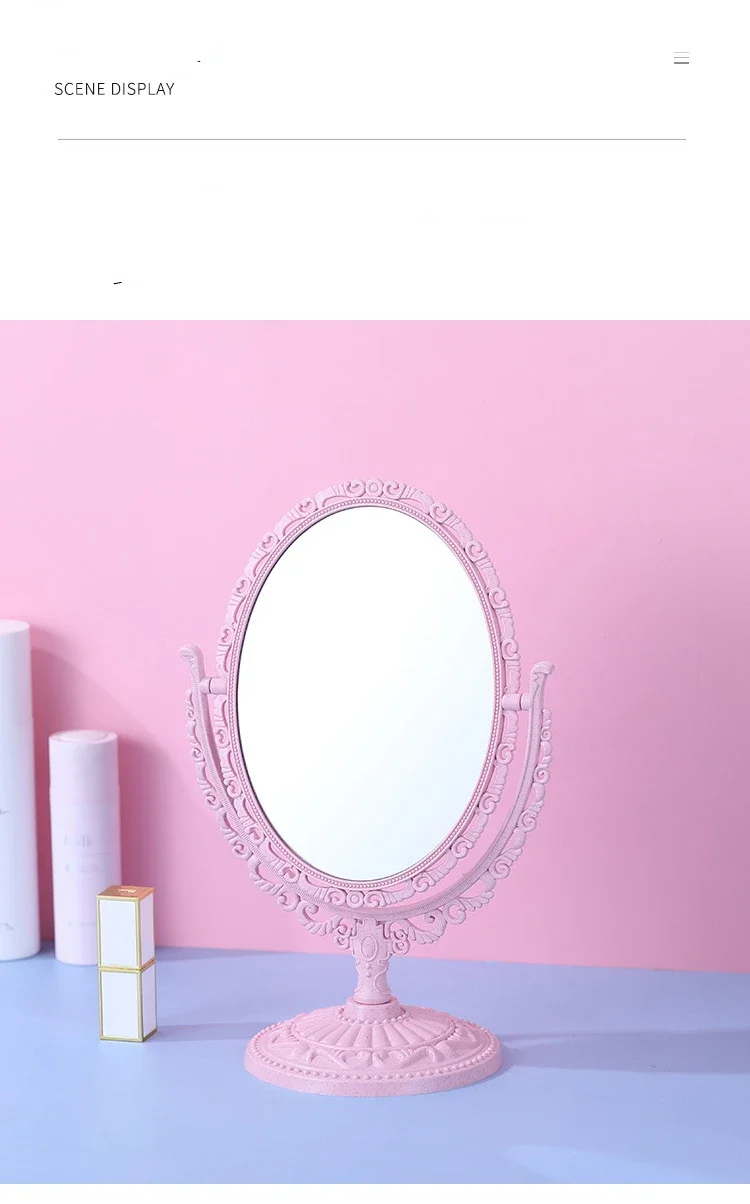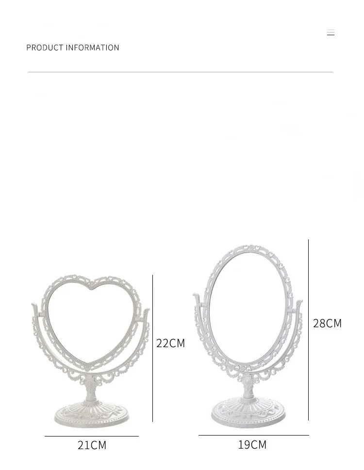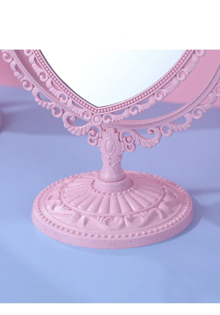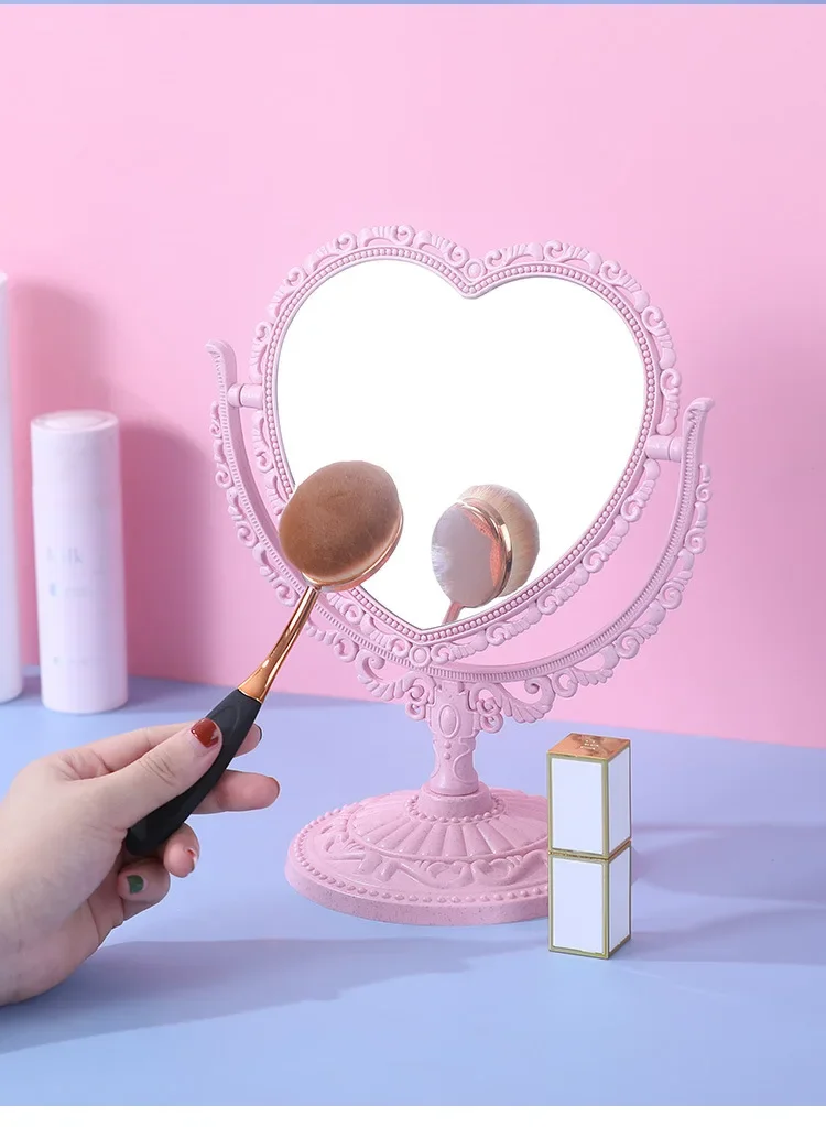 Pink Heart Shape European-Style Retro Make Up Mirror Lovely Girl Oval Princess Cosmetic Creative retro Girls Student Dormitory