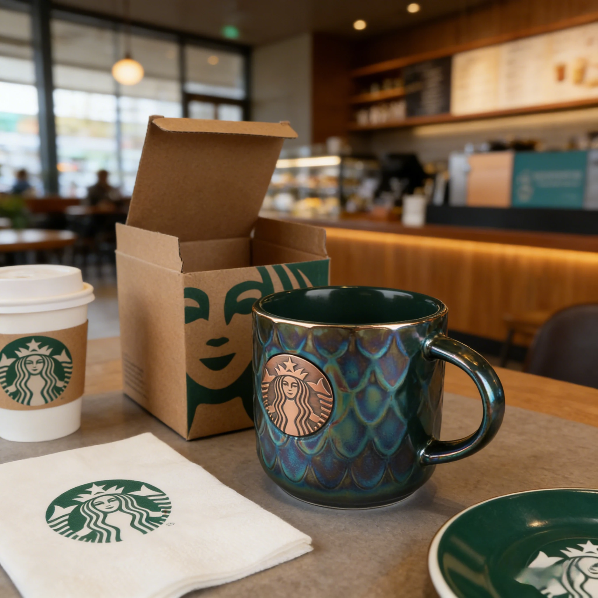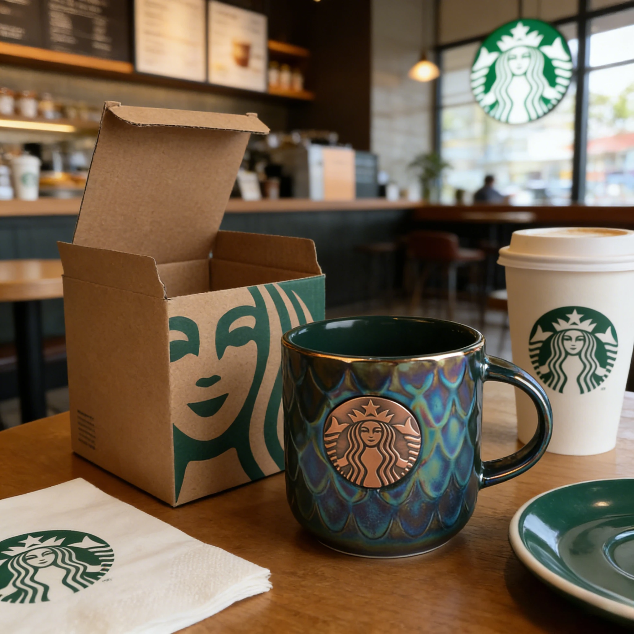 Starbucks Iridescent Green Scale Ceramic Mug 400ml with Copper Logo Gift Box for Home & Office Use